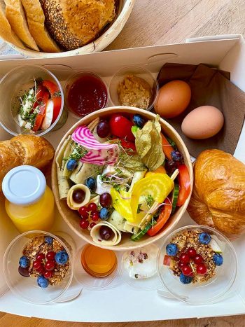 Unsere vegetarische Frühstücks-Box für Zwei beinhaltet alles was das Herz begehrt! Genießt Euer Frühstück entspannt zu Hause!