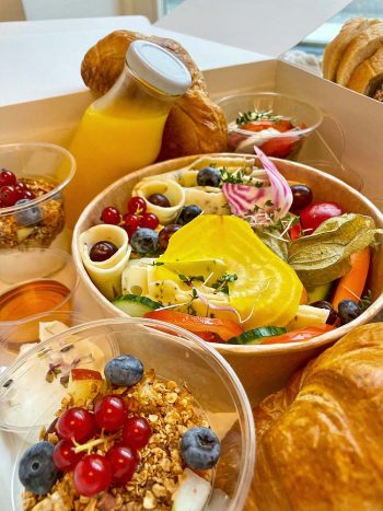 Unsere vegetarische Frühstücks-Box für 2 Personen beinhaltet: