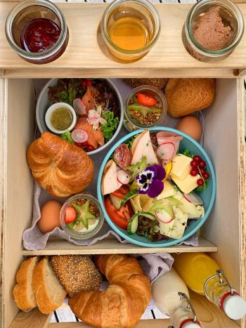 Unsere Frühstücks-Box für Zwei beinhaltet alles was das Herz begehrt! Genießt Euer Frühstück entspannt zu Hause!