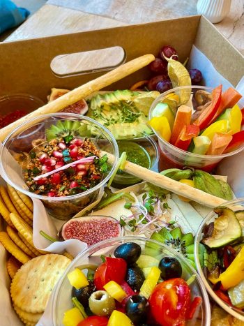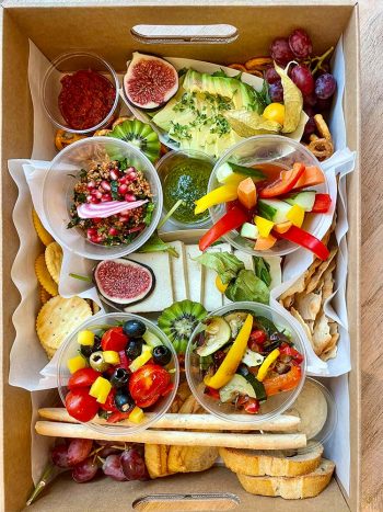 Snackt und probiert Euch durch den Abend – Die Zeitgeist Graze-Box enthält neben verschiedenen Crackern hausgemachte Dips, frische Salate, eine tolle Auswahl an italienischen Wurst- und Käsespezialitäten und natürlich viel Obst und knackiges Gemüse.